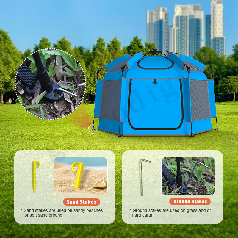 هذا الخيمة متعددة الوظائف لديها حماية الأشعة فوق البنفسجية، القاع المقاوم للماء، الداخلية واسعة، الإعداد السريع والسعر المعقول.الخيمة خفيفة الوزن ويمكن طيها في حقيبة محمولة لتحملها في كل مكان.